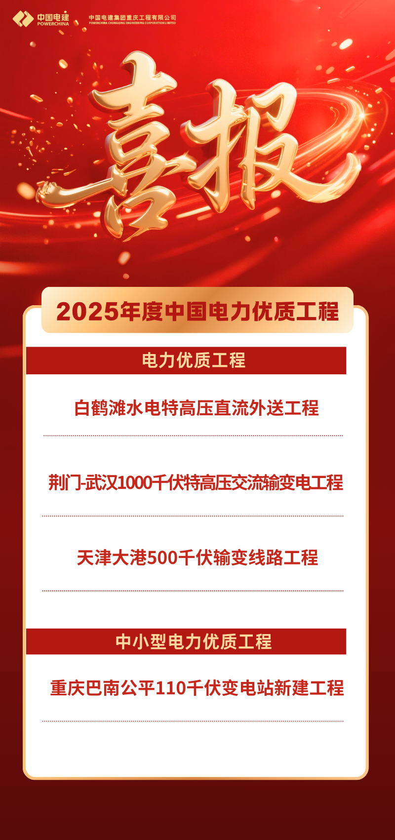 • 重慶電建四個(gè)項(xiàng)目獲評(píng)“中國(guó)電力優(yōu)...2025-08-18
